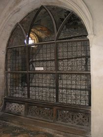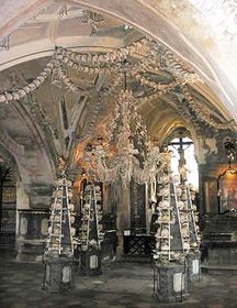 "En 1278 el abad Jindrich fue enviado por el rey bohemio con un mensaje a Jerusalén de donde trajo un puñado de tierra de Gólgota y la dispersó en el cementerio. Desde entonces, todo el mundo quería ser sepultado en Sedlec porque se creía que el alma de quien descansara en ese cementerio, estaría en el cielo en un día".